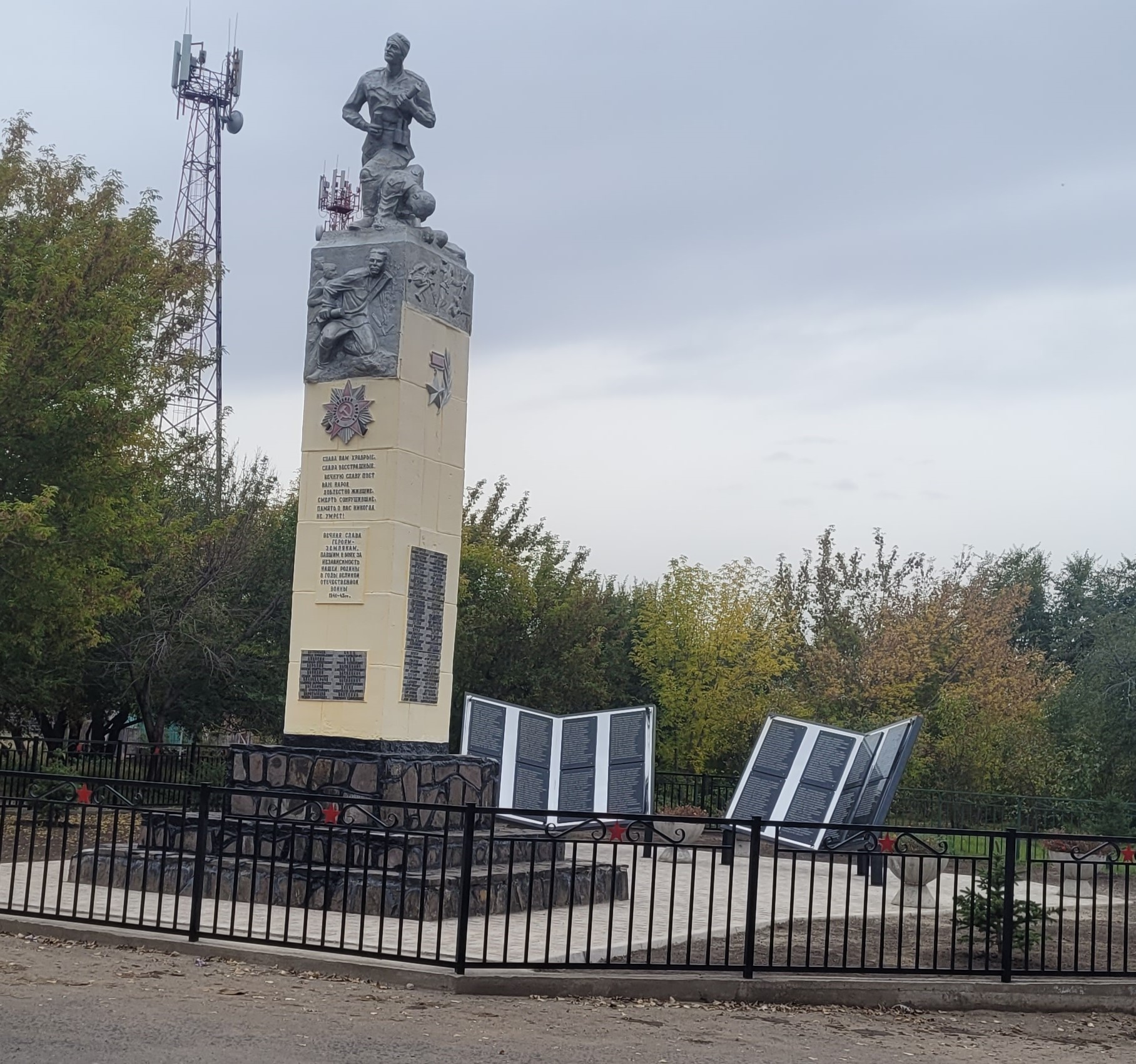 В 1971 году на территории Кавказского сельсовета Минусинского района Красноярского края скульптором Ярошенко Д. Е., уроженцем с. Кавказское, был изготовлен памятник погибшим в годы Великой Отечественной войны, постамент, облицованный коричневым камнем, бетонная стела высотой 1,8 м, на вершине стелы скульптура из двух воинов. Верх стелы украшен барельефами с изображением солдат в момент боя. На сторонах стелы изображены барельефы с изображением солдат в момент боя, орден Отечественной войне, звезды Героя Советского союза, на памятнике закреплены бетонные плиты с фамилиями 98 земляков, павших в годы Великой Отечественной войне. С тех пор проводился только косметический ремонт, значительные работы по реставрации не проводились в виду отсутствия финансов. Необходимость обновления внешнего вида вызвана современным состоянием памятника, а также установкой новых элементов в виде страниц книги с высеченными именами всех участников Великой Отечественной войны, призванных с территории с.Кавказское, также необходима замена ограждения и облагораживание территории вокруг памятника.